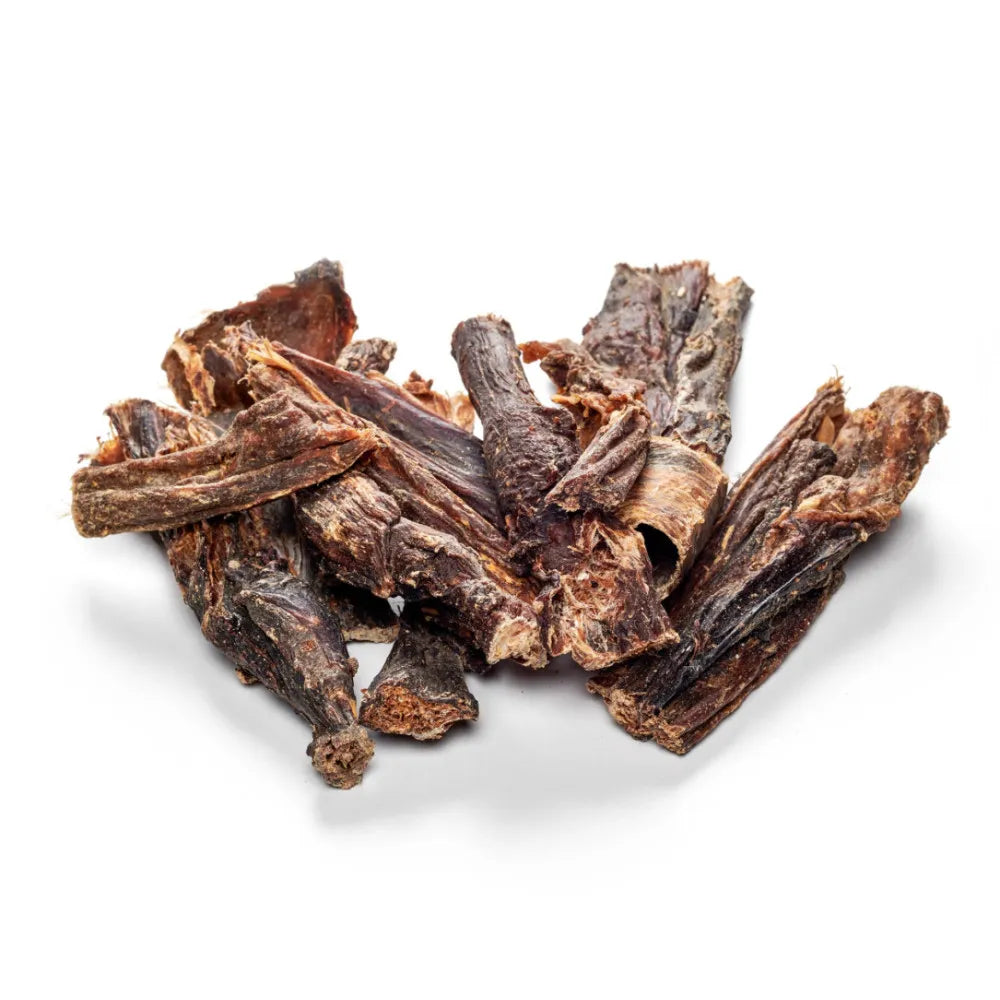 Getrocknete Fleischstreifen vom Wasserbüffel – ein harter, natürlicher Kauspaß für Ihren Hund.