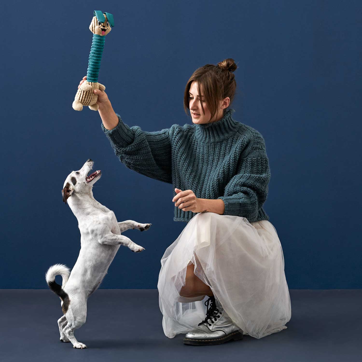 Mit GRANBY kommt keine Langeweile auf! Das kuschelige Hundespielzeug aus griffigem Kordstoff überrascht mit einem besonderen Clou: Beim Drücken stellen sich die Ohren blitzschnell auf – begleitet von einem animierenden Quietscher.