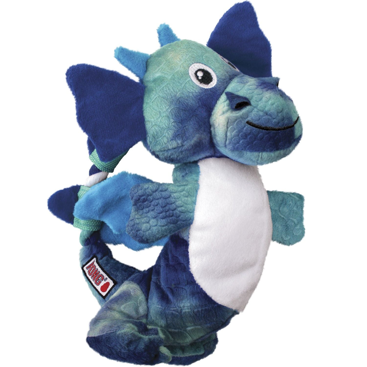 KONG Dragon Knots sind eine lustige Ergänzung der Knots Kollektion. Die lebensechte Griffigkeit des inneren Knotenseils, ein großer Quietscher und das Knistergeräusch der Zauberflügel machen Hunden Lust auf das Spiel und befriedigen ihre natürlichen Instinkte. Das stabile Knotenseil-Zerrspielzeug besitzt ein Minimum an Füllung für mehr Sauberkeit und besticht durch langanhaltenden Spaß.
