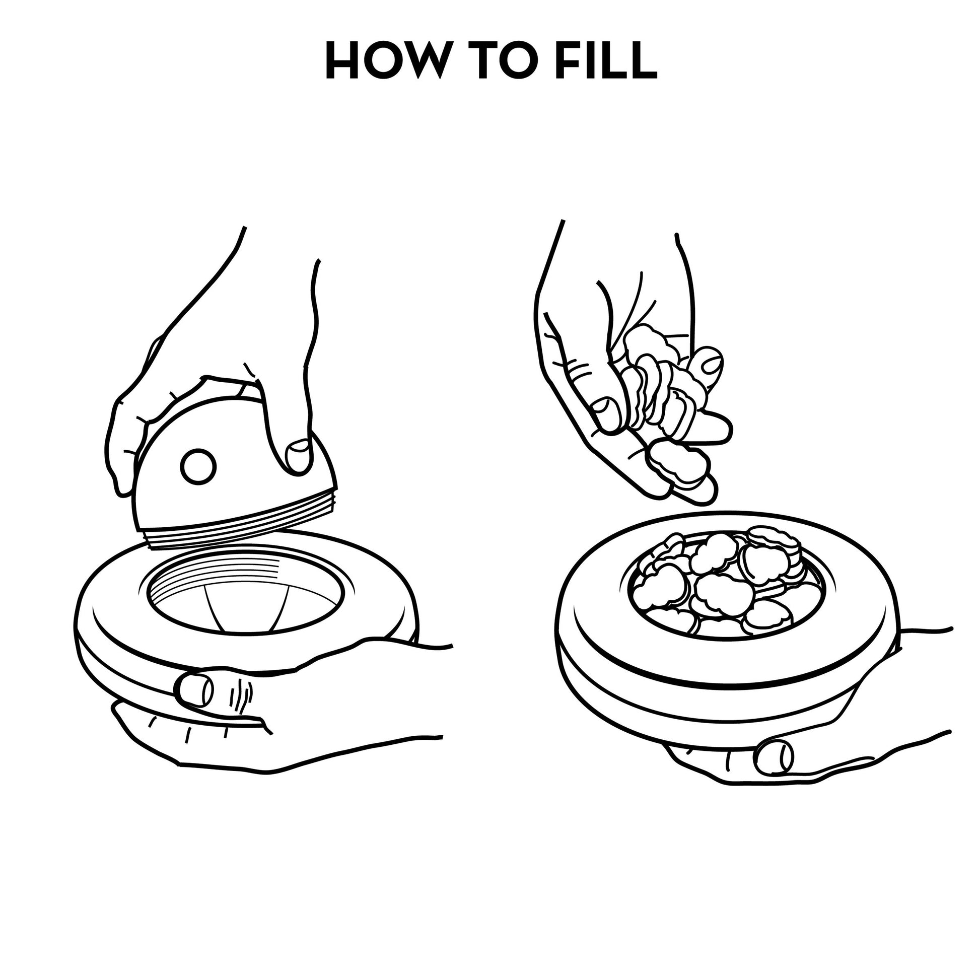 Der neue KONG Gyro überzeugt mit seiner unwiderstehlichen Roll- und Kippbewegung, die Hunde fasziniert. Die dynamische, sich drehende Kugel im Zentrum und der stillstehende äußere Ring regen Hunde dazu an, zu schieben, zu scharren und den Gyro herumzurollen. Dabei werden sie mit schmackhaften Leckerchen belohnt. Ideal für unabhängiges Spiel. Für zusätzlichen, längeren Spielspaß mit Leckerli oder mit Trockenfutter befüllen. In großen und kleinen Größen erhältlich.