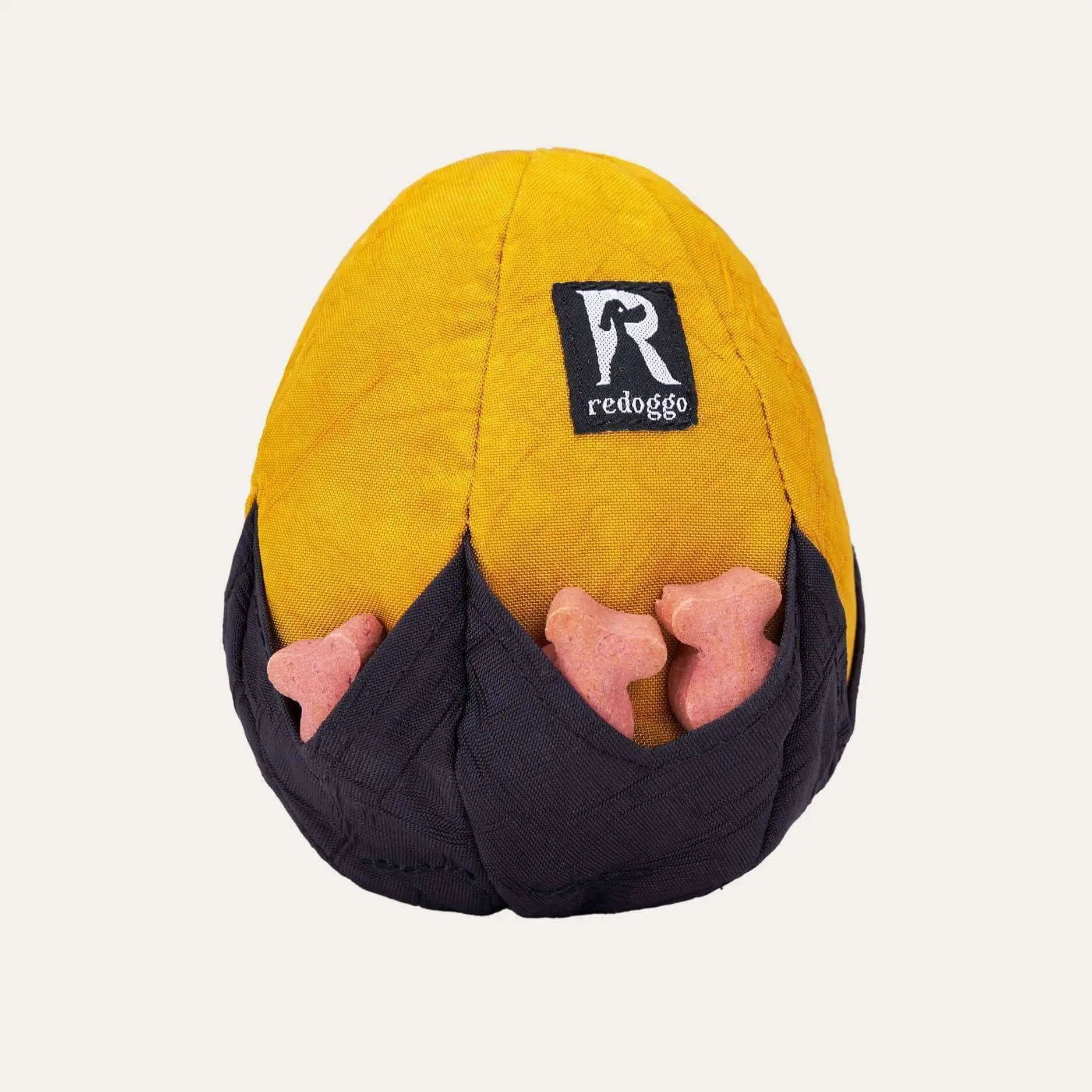Das Schnüffelei von Redoggo ist ein interaktives Spielzeug mit eingearbeiteten Taschen für Leckerlis - ideal für Nasenarbeit, mentale Auslastung und gemeinsames Belohnungsspiel.