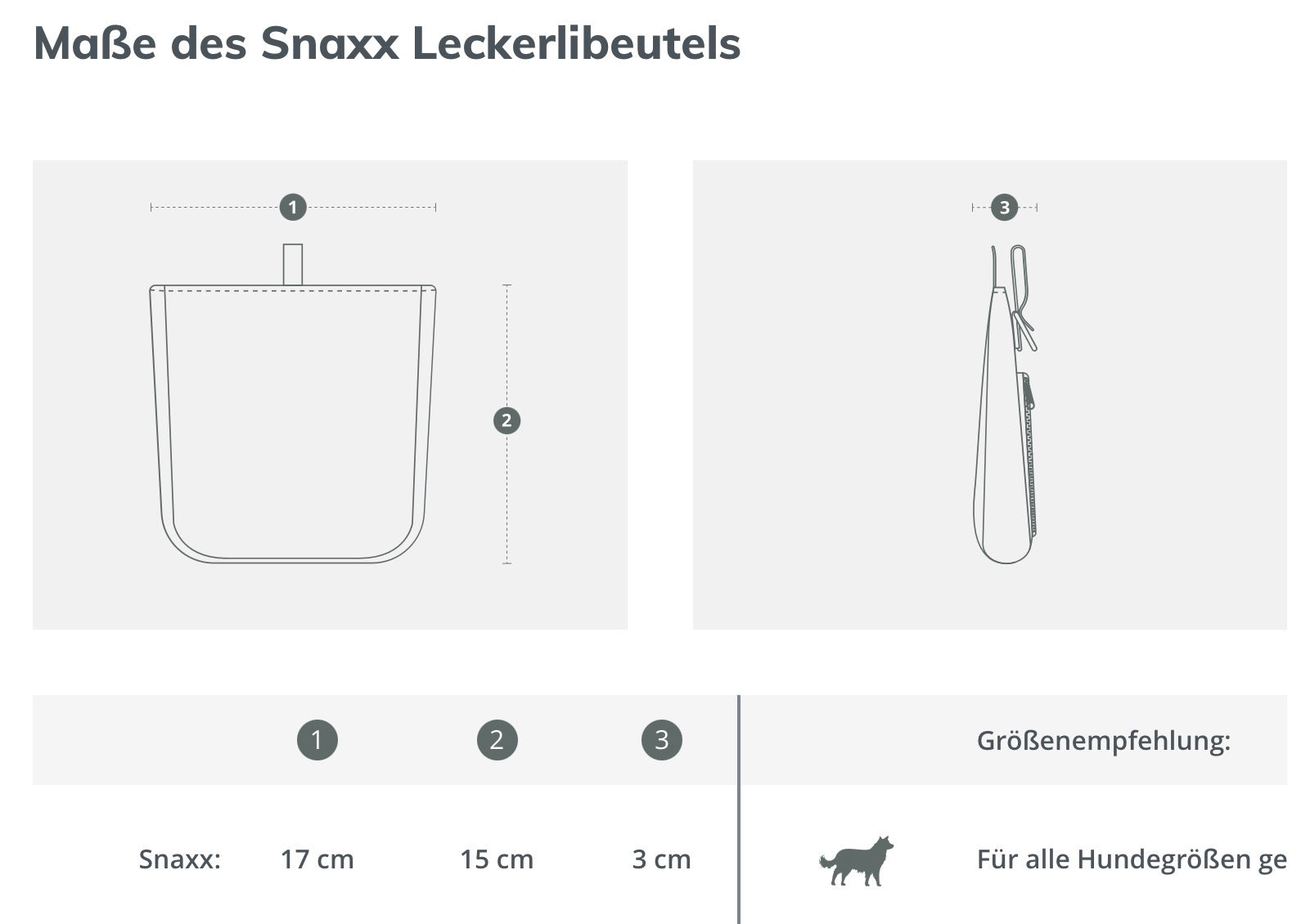 Ob beim Spaziergang im Park, auf dem Weg zum Training oder einfach mittendrin im Hundealltag – der Leckerlibeutel Snaxx ist immer an deiner Seite. Du kannst die Leckerlitasche am Gürtel tragen, an der Jacke festklippen oder dir einfach über die Schulter hängen – ganz individuell, wie du es am liebsten hast.