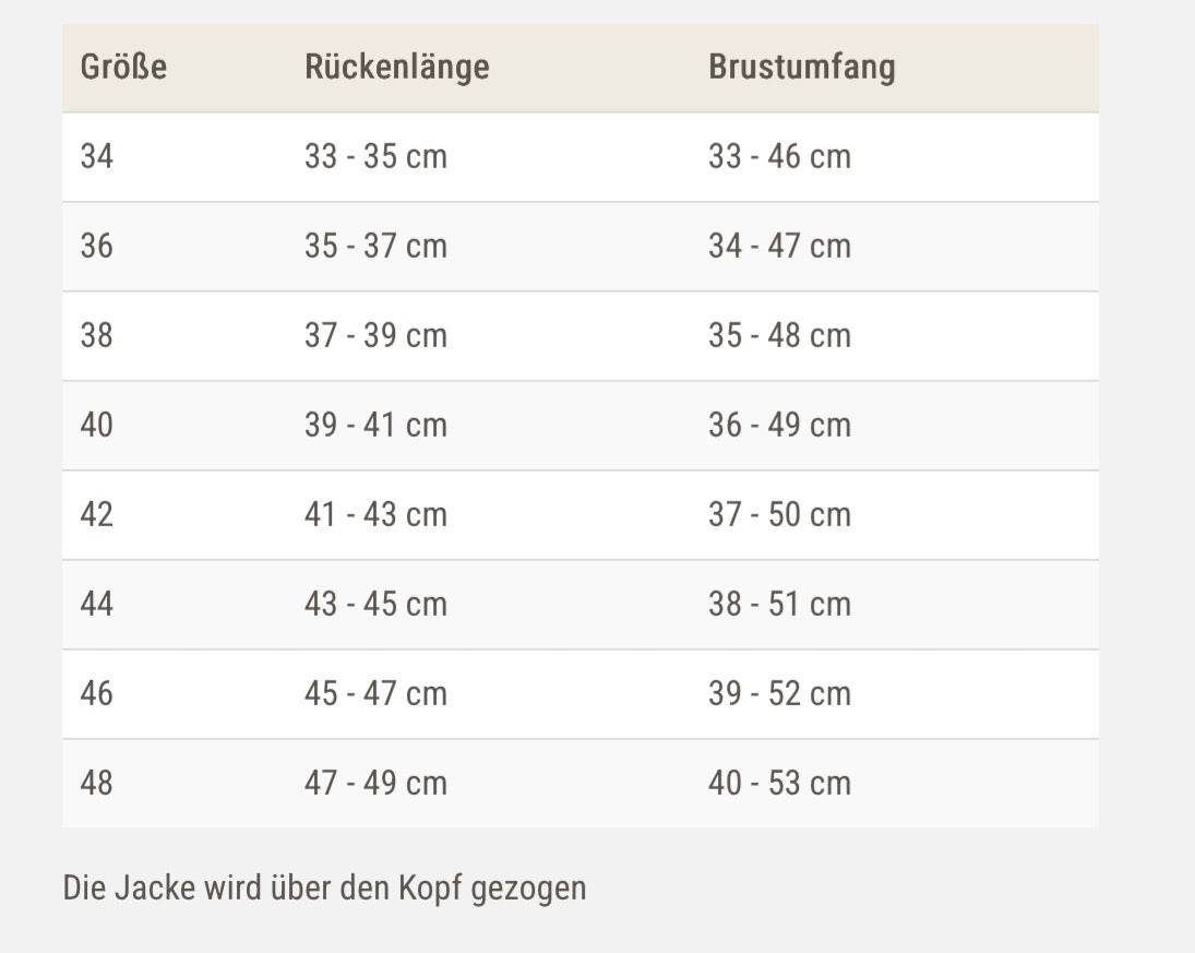 Alle unsere Hundejacken sind PFC-frei. Diese schädlichen per- und polyfluorierten Chemikalien werden im Outdoorbereich oft bei der Herstellung wasserdichter Membranen und wasser- und schmutzabweisender Beschichtungen genutzt. Zum Wohl von Mensch, Tier und Umwelt verzichten wir vollständig auf PFC und nutzen stattdessen die umweltfreundliche „Teflon EcoElite™-Imprägnierung“. Zusätzlich ist die Jacke windabweisend und atmungsaktiv. Die Sonder-Größe "Mops & Co." eignet sich hervorragend für Hunde mit breiter Brust, wie Mops oder Bulldogge. Der Schnitt Dackel eignet sich für die spezielle Körperform von Dackeln und anderen Hunden mit einem schmalen, langen Rücken.